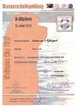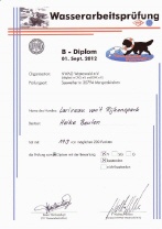 Im Sommer 2012 habe ich als sogenannter *Quotenhund* erfolgreich die ersten beiden Wasserarbeitsprüfungen, das A + B - Diplom bestanden! :-)