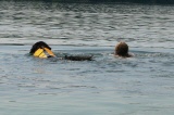 Zusätzlich hat meine Menschin mir, obwohl ich bisher wirklich eine absolut überzeugte Nichtschwimmerin war - und das auch im Alter von 8,5 Jahren noch..., das Schwimmen beigebracht. Das hilft beim Muskelaufbau natürlich ungemein. Wir fahren im Sommer so oft wie möglich, d.h. fast jeden Tag, an einen *unserer* Seen. Ich bin fast zu einer Rettungsschwimmerin geworden meint meine Menschin.